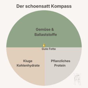Der schoensatt-Kompass zeigt dir die vier Bausteine, die eine Mahlzeit tragfähig machen.
